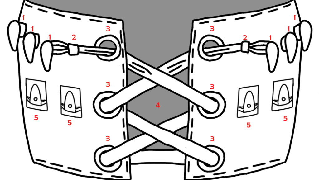 - Adjustable strap-end that can be hooked to the Hooks/Teeth (2) and kept stable.