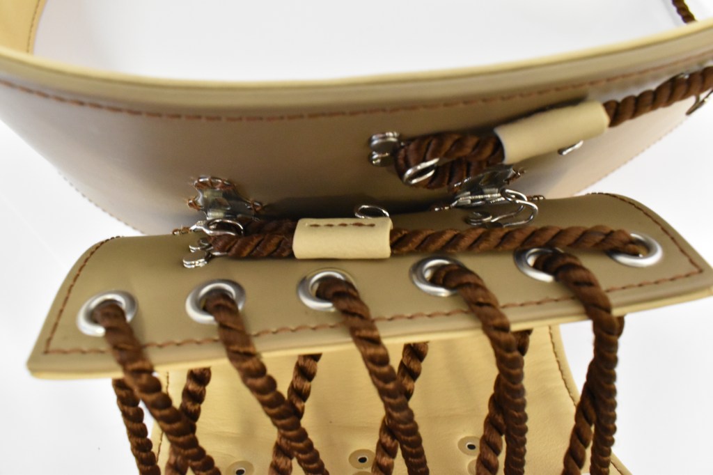 - Stainless fabric eyelets so that the leather straps pass through the belt with minimum friction and damage.